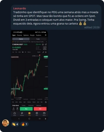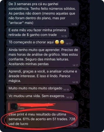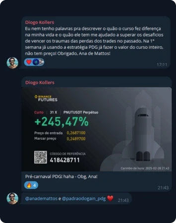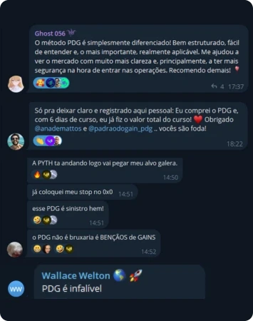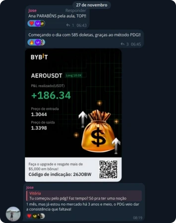 Resultado não se discute, se mostra. Há +2 anos compartilho os meus trades antes do movimento, com histórico público. Veja os ganhos e a opinião de quem já opera com o PDG: