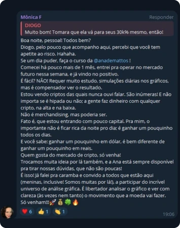 +1000 membros ativos no Telegram. O seu ponto de Networking com traders, investidores e estudantes cripto!